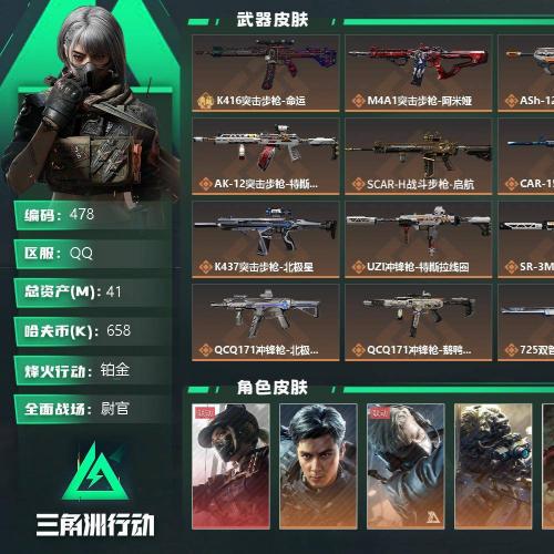 总资产275M 4干员外观 1传说近战 4传说枪械 黄金区服类型: 三角洲行动 /游戏账号 |