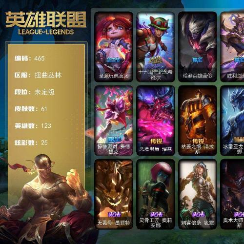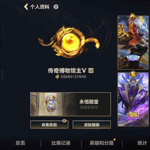 传说327史诗565皮肤132英雄铂19神话71金战争学院