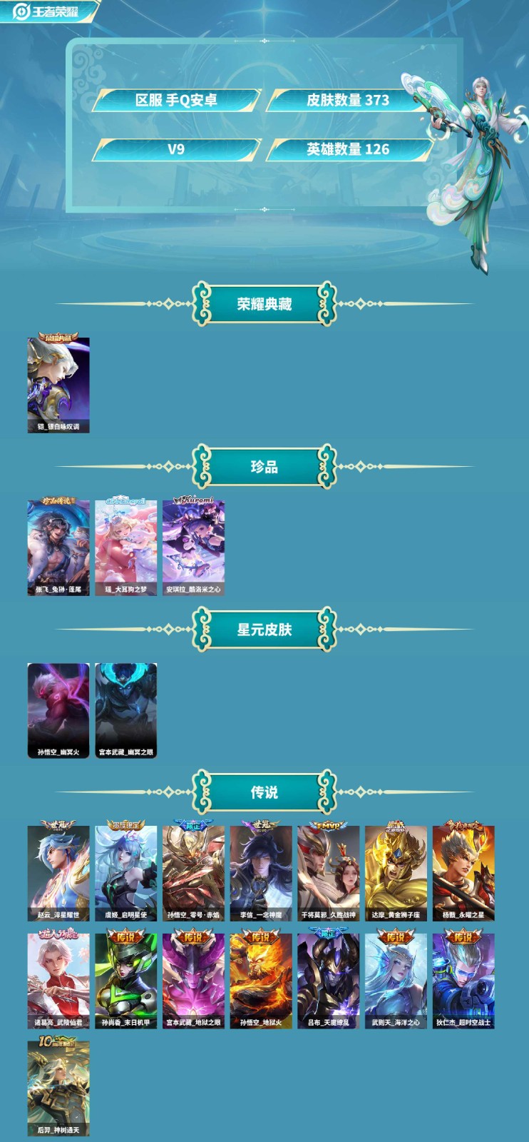 V9 1典藏 15传说 112史诗 371皮肤 至圣王者...¥1000.00