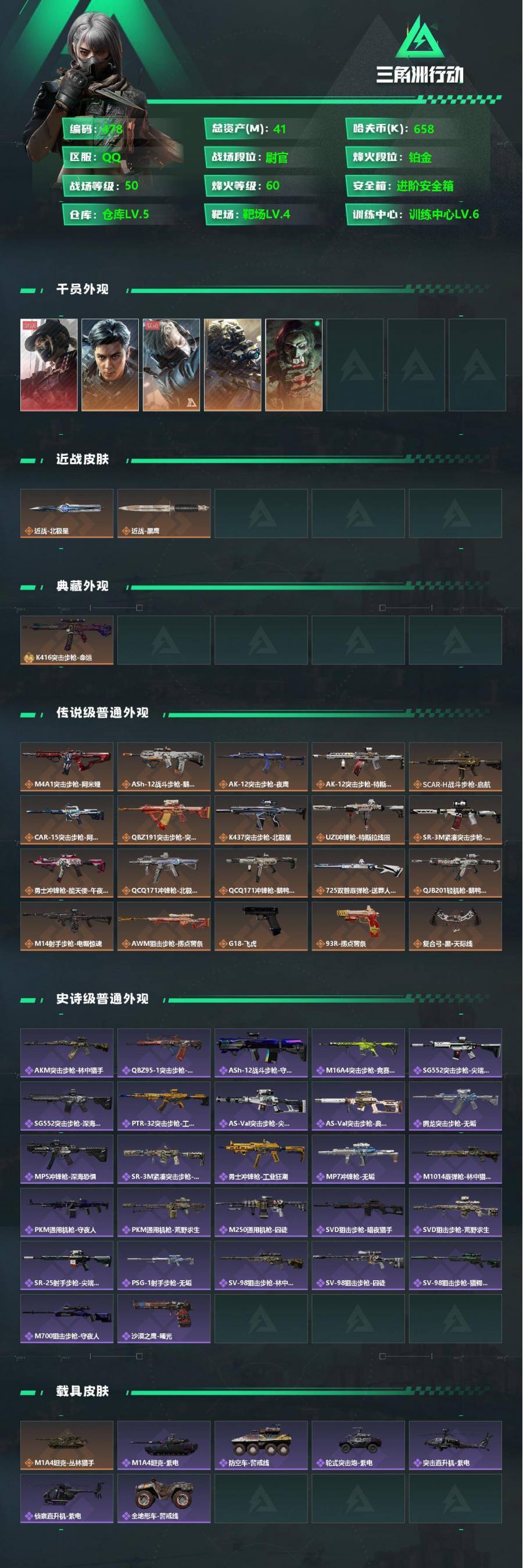总资产41.9M 2干员外观 2近战 9传说枪械 烽火:白银 战场:无...¥2000.00