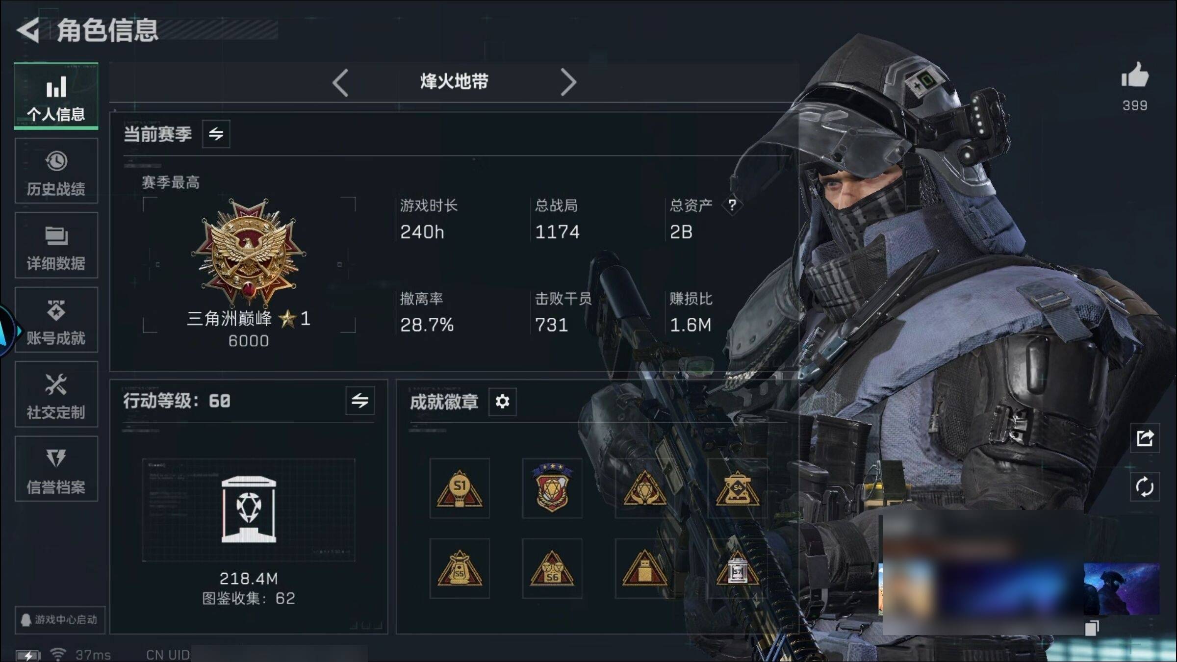 总资产9M 2干员外观 1近战 21传说枪械 烽火:三角洲巅峰 战场:...¥1000.00